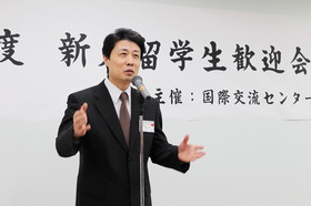 歡迎會上,札幌大學(xué)校長宮腰昭男先生代表學(xué)校致詞。