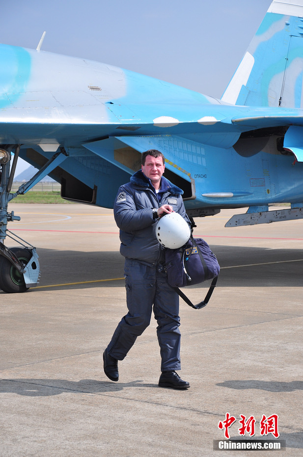 剛從蘇27戰(zhàn)機(jī)下來的飛行員穿得很厚。陳海峰 攝