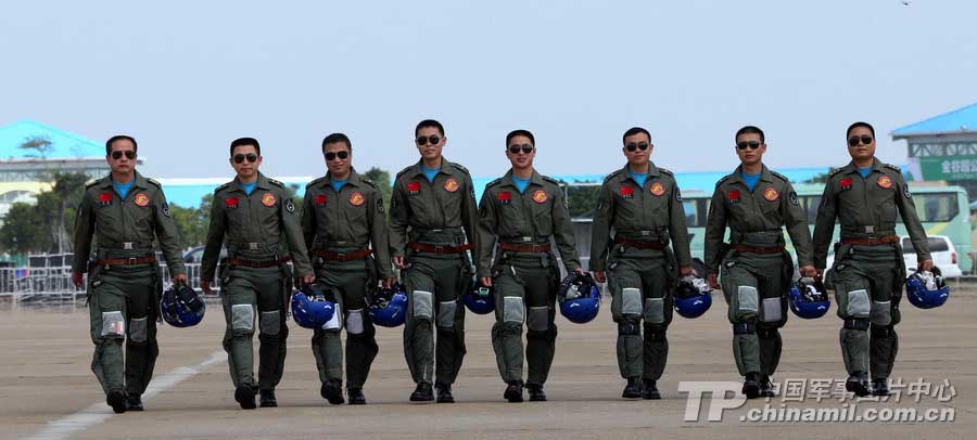 八一飛行表演隊的飛行健兒入場。解放軍報記者 喬天富 攝
