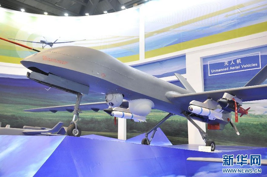 這是珠海航展上展出的彩虹4(CH-4)無(wú)人機(jī)系統(tǒng)(11月14日攝)。新華社記者 梁旭 攝