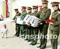春節前夕,中國各地解放軍與民眾互動活動活躍。地處山東省棗莊市山區的解放軍軍官為當地小學捐獻計算機,以便山村里的孩子能接受到信息教育。作者:劉明祥