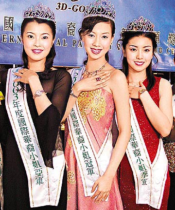 中新網1月27日電 “2003年度國際華裔小姐”前晚在一片爆冷聲中誕生,昨日即馬不停蹄地在香港出席領獎活動。