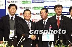 朝鮮、韓國奧委會官員在日本青森舉行聯合記者招待會,宣布在二月一日第五屆亞冬會開幕式上,南北選手將共舉朝鮮半島統一旗,聯合出場。作者:陶光雄