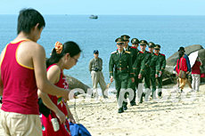武警戰士春節期間在海南天涯海角風景區加強巡邏,以確保游客安全。根據旅游部門公布的數據,春節期間,海南三亞與黑龍江哈爾濱游客大量增加,再度成為冬季旅游的兩個熱點。作者:毛建軍