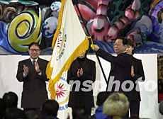 中新社青森二月八日電(記者 陶光雄)為期八天的第五屆亞洲冬季運(yùn)動(dòng)會(huì)今天在日本青森落下帷幕,中國(guó)長(zhǎng)春市市長(zhǎng)祝業(yè)精在閉幕式上,從亞奧理事會(huì)副主席霍震霆手中接過會(huì)旗,與各國(guó)運(yùn)動(dòng)員相約于二00七年的長(zhǎng)春第六屆亞冬會(huì)。