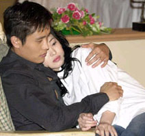 從26日凌晨5時起,兩人就開始排練。宋慧喬坐在李炳憲的膝蓋上表白“我愛你”,但她因過分投入,竟流了眼淚,由于劇本上沒有這種要求,暫停拍攝。李炳憲就像影片《亂世佳人》中的克拉克·蓋博一樣,舉起宋慧喬,挪到床上去,讓攝制組感到滿意。李炳憲先在躺在床上的宋慧喬的前額接吻后,又熱烈地接吻宋慧喬的嘴唇,成功地表演了床上接吻戲。