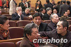 圖:宋祖英和張藝謀在全國政協(xié)開幕式前
