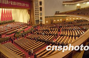 兩千九百多名全國人大代表出席閉幕會。新當選的全國人大常委會副委員長坐在主席臺前。中共中央政治局九常委全部出席會議。江澤民出席會議。剛剛卸下重任的李鵬、朱镕基、李瑞環、李嵐清出席會議。