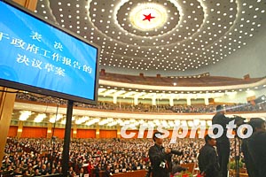 圖:十屆全國人大一次會議通過政府工作報告等決議草案