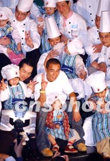為宣傳即將在4月舉辦的"第12屆全港廚師精英大匯演",城中多位名廚18日在君悅酒店與協康會小朋友一起參與別開生面的廚藝比賽。洪少葵 攝
