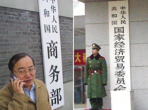 沒有儀式、沒有聲張,25日清晨,北京東長安街2號懸掛了10年之久的“中華人民共和國對外貿易經濟合作部”的牌子被摘了下來,取而代之的是“中華人民共和國商務部”的大牌子。
