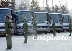 在所有為“兩會”執勤的哨兵當中,最不引人注目的要算車場哨了。他們沒有大門哨的威武瀟灑,沒有路線哨的風光無限,在“被人遺忘的角落”。他們上哨時背對大街,代表休息時面對的是一排排的大客車,代表開會時面對的是光禿禿的車場。車場哨兵景子輝說:“我們的哨位雖然不被注意,但它是大會安全工作的‘軟肋’,我們必須守好它,確保萬無一失。”