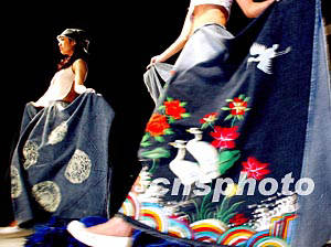 正在北京舉行的時裝周上,一向硬朗的牛仔服飾在韓國設計師的描畫下展現出絢爛而嫵媚的風格。作者:鄭萍萍