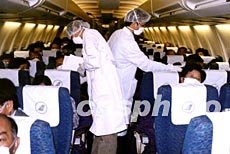 廣州四月底加強口岸防治“非典”力度,白云機場向入境旅客發放“入境健康申明卡”。作者:白云
