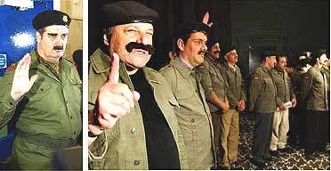 倫敦時間上午11點(北京時間19點),倫敦西區(qū)哈默史密斯“河畔攝影場”門外14名演員排起了長隊,其中《衛(wèi)報》的工作人員斯蒂芬·莫斯也在隊伍中,他們是來面試的,看起來他們都長得有幾分像薩達姆,頭上戴著黑色貝雷帽,卡其布的軍裝夾克,而且都有黑色的假胡子,最令人驚奇的是居然有一位女士也來競爭扮演薩達姆的機會,她化妝后也與薩達姆有點像。