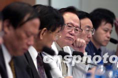 圖為病毒學家洪濤院士等專家在北京會場聆聽發言。
