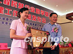 中新社廣州五月三十一日電(王華鄧劍平)廣東民營企業致富先助學,向希望工程捐款設立專項助學基金。今天下午,廣州富力地產集團率先向希望工程捐贈一千五百萬元人民幣,設立希望工程民營企業助學基金的首個專項命名基金。