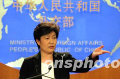 六月三日,中國外交部發言人章啟月在例行新聞發布會上就中國國家主席胡錦濤出訪等問題回答中外記者的提問。中新社記者:盛佳鵬