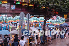 六月十五日,盡管香港下著大雨,但是依然有數萬市民冒雨觀看千人舞龍舞獅大巡游。潘索菲 攝