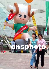 2003年9月,第六屆全國殘疾人運動會將在江蘇南京舉行,近日,殘疾人運動會的吉祥物“羊羊”出現在南京街頭。又又 攝
