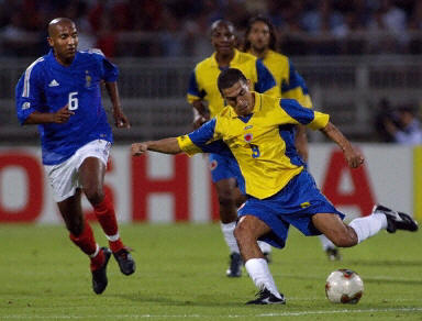 哥倫比亞隊目前正處于進球荒,在這場比賽之前,該隊已經有5場比賽沒有入球。不過本場比賽面對衛冕冠軍法國隊,他們卻絲毫沒有表現出弱隊的樣子。法國隊缺少了中場大將齊達內和維埃拉,球隊進攻組織有些凌亂。上半場,場上局面僵持,法國隊也只有一兩次像樣的進攻。