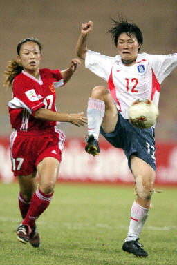 在十九日晚間于曼谷進行的一場女足亞洲杯的半決賽中,憑借著白潔的梅開二度和孫雯的錦上添花,中國女足以三比一力克韓國隊,順利進軍決賽。