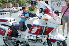 2003年6月22日,香港警務處在維多利亞公園舉行的“同心攜手畫出彩虹”嘉年華活動上,展示警用電單車。中新社記者 錢興強