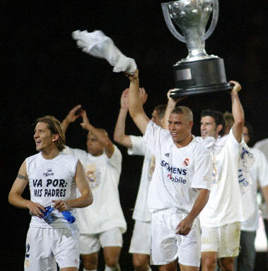 中新網6月23日電 2002年-2003年賽季西班牙足球甲級聯賽22日結束。皇家馬德里隊當天在最后一輪比賽中主場3:1戰勝畢爾巴鄂隊后,以78分的最高總積分奪得冠軍。