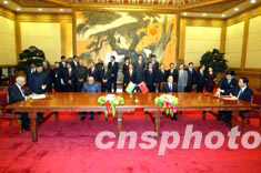 中國總理溫家寶與印度總理瓦杰帕伊二十三日上午在北京人民大會堂舉行會談,并出席中印關于簡化簽證手續的諒解備忘錄等九個文件的簽字儀式。中新社記者:毛建軍