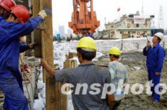 然而,各方施工人員卻并未因此有稍許松懈。在江邊的警戒線周圍,記者看到幾名測繪人員扛著儀器不停地穿梭其間,一名工作人員告訴記者,他們每隔一個小時都對該地塊進行一次巡回測量,以隨時掌握地表水平情況。在中山南路側,上海地礦的幾名工作人員利用工作間隙在路旁小憩,他們告訴記者,現場有多家公司參與了地面注漿,他們公司專門負責中山南路地面段的注漿任務,連日來他們的工作已卓有成效,事故地塊地基基本穩定,但為取得最后的勝利,他們的注漿工作還將持續一段時間。