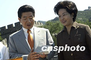 盧武鉉與夫人登上北京八達嶺長城。中新社記者:毛建軍