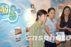 由香港康樂及文化事務署舉辦的“海上動感藝廊”活動,七月十二日在香港開幕,該活動目的是為繁忙的都市開辟另類的藝術空間,讓市民在日常生活中享受藝術樂趣。圖為裝置藝術設計者與作品。中新社記者:錢興強