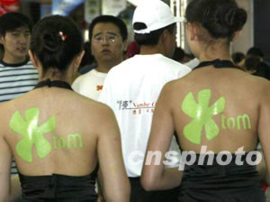 圖:長春汽車博覽會上的人體彩繪廣告
