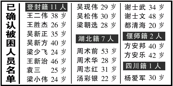 另據了解,遇險的21名礦工中河南籍13人,湖北籍7人,四川籍1人。發生事故的東風煤礦屬一家四證(采礦許可證、營業執照、法人代表資格證、生產許可證)齊全的鄉鎮煤礦,已開采了10多年。事故發后該礦的法人代表、礦長及其他管理人員逃離現場,給搶險工作增加難度,目前公安部門正在全力進行追捕。