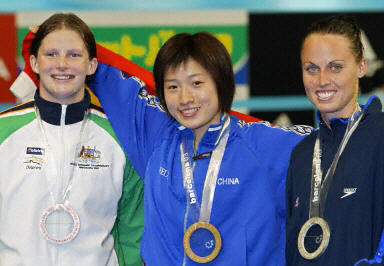 羅雪娟在游泳世錦賽上蟬聯女子100米蛙泳冠軍