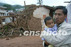 云南省大姚縣曇華鄉(xiāng)是七月二十一日地震的重災(zāi)區(qū),許多房屋倒塌。中新社記者:毛建軍