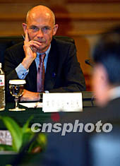 出席七月中國大連第五屆亞歐經濟部長會議的歐盟委員會貿易委員拉米,與中國商務部部長呂福源就世界貿易組織新一輪多邊貿易談判的有關議題深入交換了意見。 中新社記者:鄭萍萍