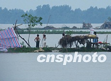安徽省穎上縣淮河行洪區的洪水在七月下旬緩慢回落,但嚴重的內澇排水困難,不舍家園的受災百姓如今依然生活在堤壩上。作者:偉雅
