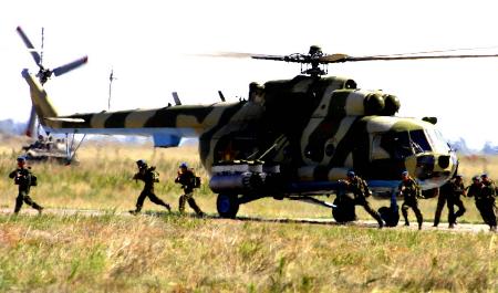 中新網8月7日電 上海合作組織成員國今天上午在哈薩克斯坦東部邊境某空軍基地,進行了反劫機聯合軍事演習,演習取得圓滿成功,“被劫人質”被安全解救。