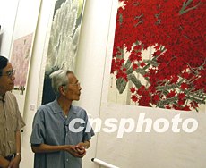 中國美術館重新開館半月以來,許多著名畫家來此參觀和交流。圖為繪畫大師吳冠中觀看館藏精品展。中新社記者:張勤