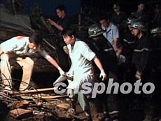 八月九日傍晚,位于廈門市湖里區湖邊水庫附近一座在建廠房發生坍塌,80余名正在施工的工人被壓在廢墟下面。事故發生后,有關部門組織力量全力施救,有四十三名傷員被送往醫院搶救,其中三人經搶救無效死亡,現在共有七人死亡。圖為搶救現場。中新社圖