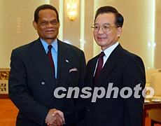 中新社北京八月十八日電(記者齊彬)中國國務院總理溫家寶今天會見了到訪的第五十八屆聯合國大會當選主席、圣盧西亞外交、國際貿易和民航部長朱利安·亨特。賓主雙方就當前國際形勢、如何在和平與發展領域發揮聯合國的作用等問題交換了看法。