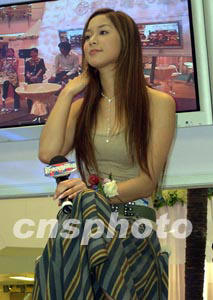 香港演藝明星徐子淇二十四日出席一新聞發布會時,身穿低胸緊身衣,性感十足。作者:譚達明