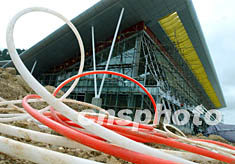 正在四川省松潘縣川主寺修建安裝的九寨黃龍旅游機場候機樓,為中國高原的現代化航空港,將于九月二十八日通航使用。它可停靠五架飛機,滿足年六十萬人次的旅客流量。中新社記者:賈國榮