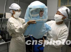 根據(jù)北京市新出臺的防治SARS緊急預案,如果出現(xiàn)一例SARS患者或疑似患者將首先啟動北京市地壇醫(yī)院。9月15日,地壇醫(yī)院ICU的護士已經將治療SARS患者的防護、治療設施準備到位以備隨時啟用。中新社記者:任晨鳴