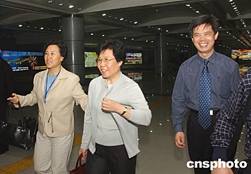 九月二十一日,出席第二屆世界華文傳媒論壇的國務院僑辦主任陳玉杰(中)抵達長沙,中國新聞社總編輯郭招金(右)等人前往機場迎接。中新社記者:武仲林