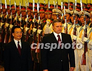 中新社北京九月二十四日電(記者齊彬)中國總理溫家寶今天在人民大會堂與俄羅斯總理卡西亞諾夫舉行會談。會談自始至終充滿了友好氣氛,兩國領導人在雙邊和國際問題上取得了廣泛共識。
