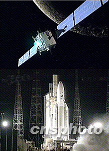 歐洲第一個月球探測器“靈敏-1”號,于北京時間周日上午7點14分搭乘歐洲“阿麗亞娜-5”型火箭從法屬圭亞那地區庫魯航天中心成功發射升空。與“靈敏-1”號同時發射升空的還有兩枚商用衛星。預計15個月后,重370公斤的“靈敏-1”號探測器,將到達繞環月軌道,在月球軌道上工作30個月。中新社圖