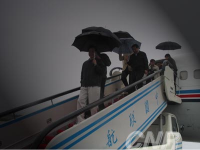 中新網10月2日電 國慶節一大早,溫家寶總理和回良玉副總理帶著民政部、財政部、水利部、國務院發展改革委員會等部門近10位部級干部乘專機冒雨到三秦慰問受災百姓。