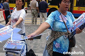 中國“神舟”五號十月十五日上午九時在酒泉衛(wèi)星發(fā)射中心成功升空,香港市民關(guān)注“神舟”五號首次載人發(fā)射成功。中新社記者:錢興強(qiáng)
